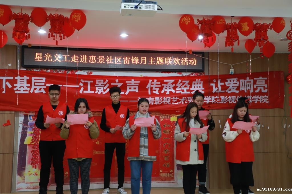 三月是雷锋月,影视传媒学院青年志愿者协会将开展“先进文化下基层”系列公益活动。17号上午,我们在惠景社区的活动主题为“江影之声 传承经典 让爱响亮”,共同献爱心,关爱老人和残疾人。